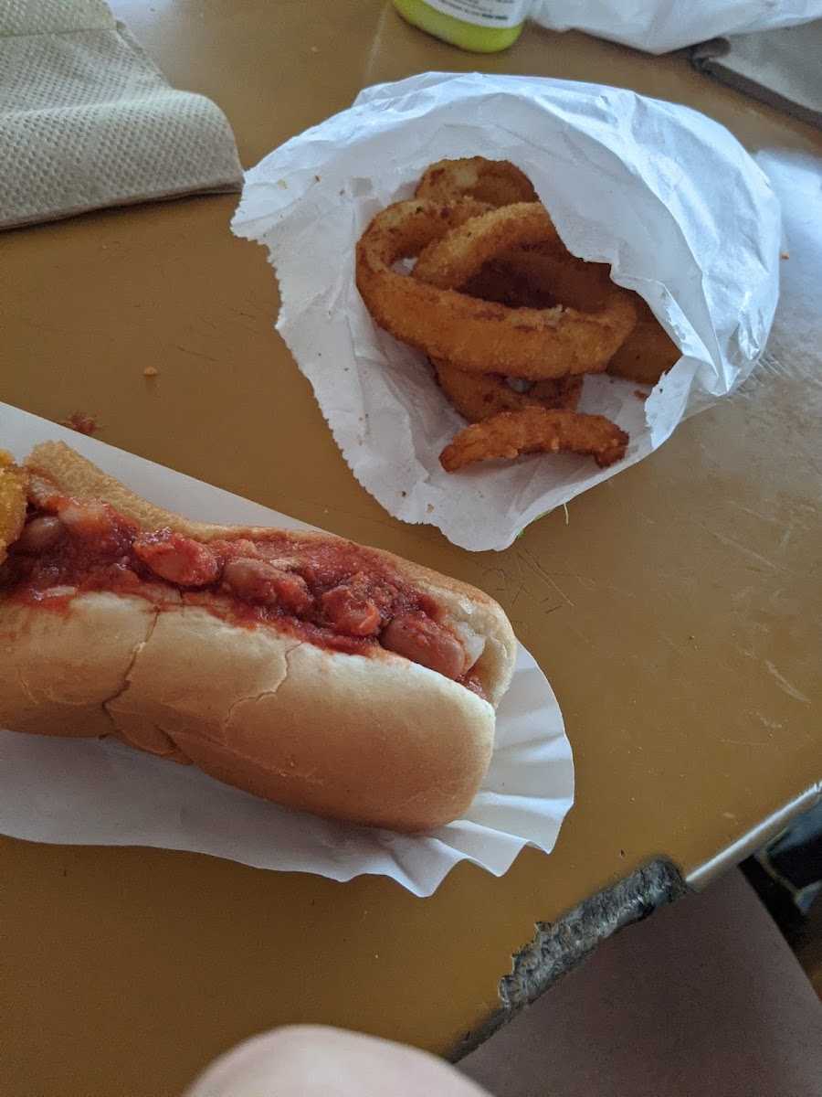 The menu leans heavily on classic hot dog varieties, including chili dogs, spicy chili dogs, and chili cheese dogs, plus sides like onion rings and their famously praised fries, which attract loyal fans. You’ll also find a handful of sandwiches and dinner options, but the chili dogs are clearly the star. Expect straightforward, hearty flavors here – a solid chili dog or burger with toppings piled on just right makes for an experience that’s more nostalgic comfort food than gourmet.