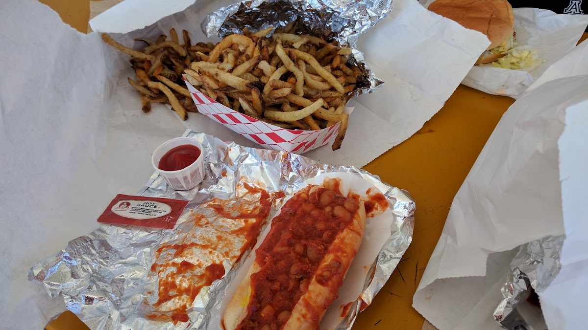 This spot suits anyone looking for a quick, filling bite of classic deli-style chili dogs, especially families or folks craving a taste of Tucson’s longstanding fast food tradition. Midday or early evening visits work well—peak times when locals swing in for a quick meal. The simplicity, small outdoor seating, and hefty portions make it feel like a neighborhood favorite more than a destination for tourists.